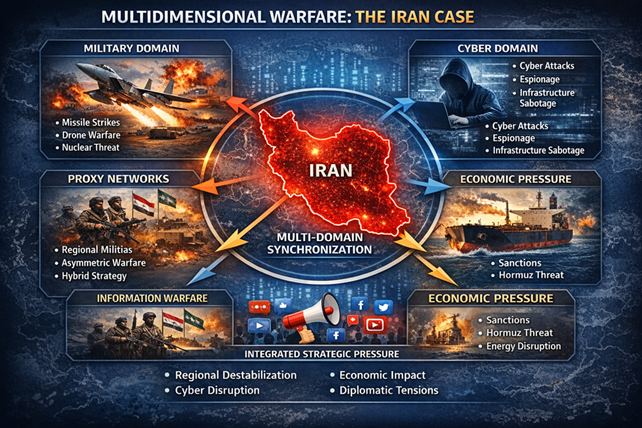 În concluzie, războiul multidomeniu reprezintă o formă evolutivă a conflictului contemporan, caracterizată prin integrarea simultană a mai multor domenii operaționale și prin utilizarea coordonată a diverselor instrumente de putere. Această transformare reflectă adaptarea actorilor strategici la complexitatea mediului internațional actual și la oportunitățile oferite de noile tehnologii. Înțelegerea acestui tip de conflict este esențială pentru analiza conflictelor regionale contemporane, inclusiv pentru evaluarea dinamicii strategice din Orientul Mijlociu și a rolului Iranului în arhitectura regională de securitate.