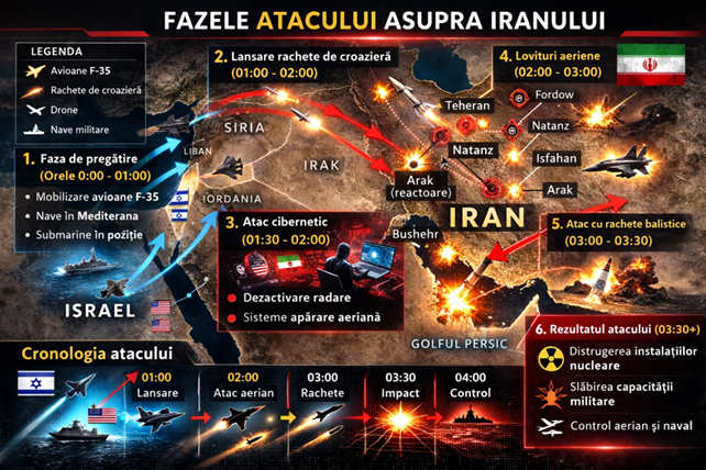 Identificarea operațiilor în fiecare domeniu, analiza sincronizării dintre domenii și evaluarea efectelor strategice cumulative în acțiunea din Iran
