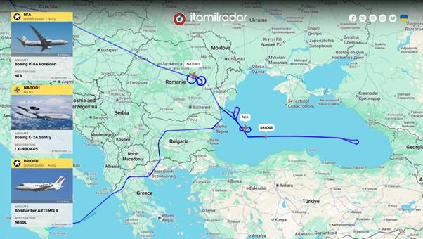 This morning, the Black Sea region was once again the focus of significant intelligence gathering activity, with multiple ISR assets operating simultaneously in support of NATO situational awareness along the Alliance’s eastern flank.