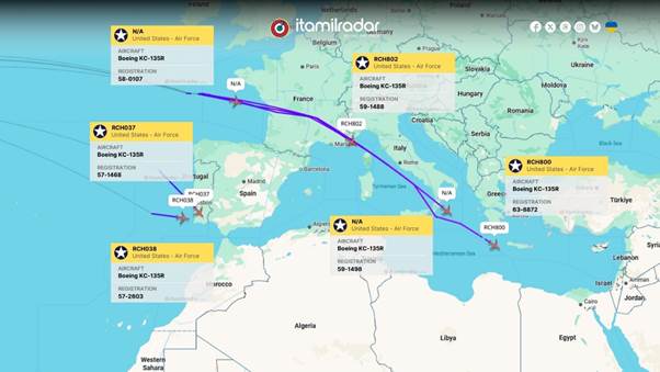 US Air Force tanker planes cross the Atlantic to the Gulf, signalling a new phase of escalation